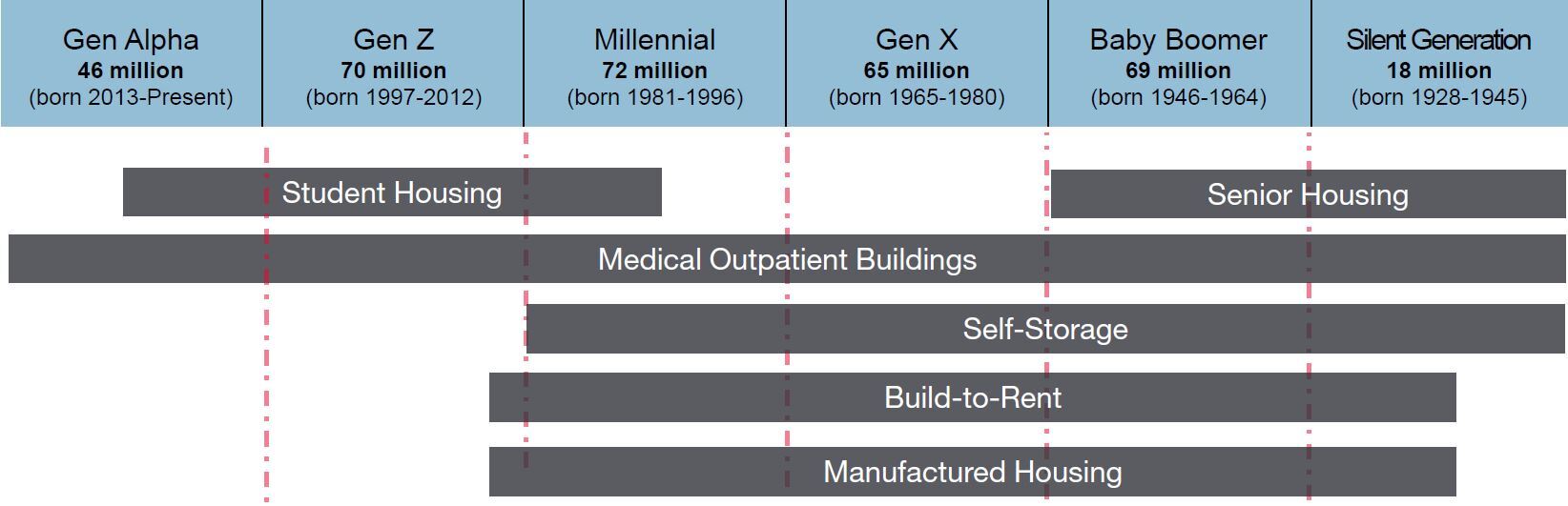 All Baby Boomers will reach 65 by 2030 driving increased demand for healthcare real estate, including the vital medical outpatient building and senior housing community subsectors.
