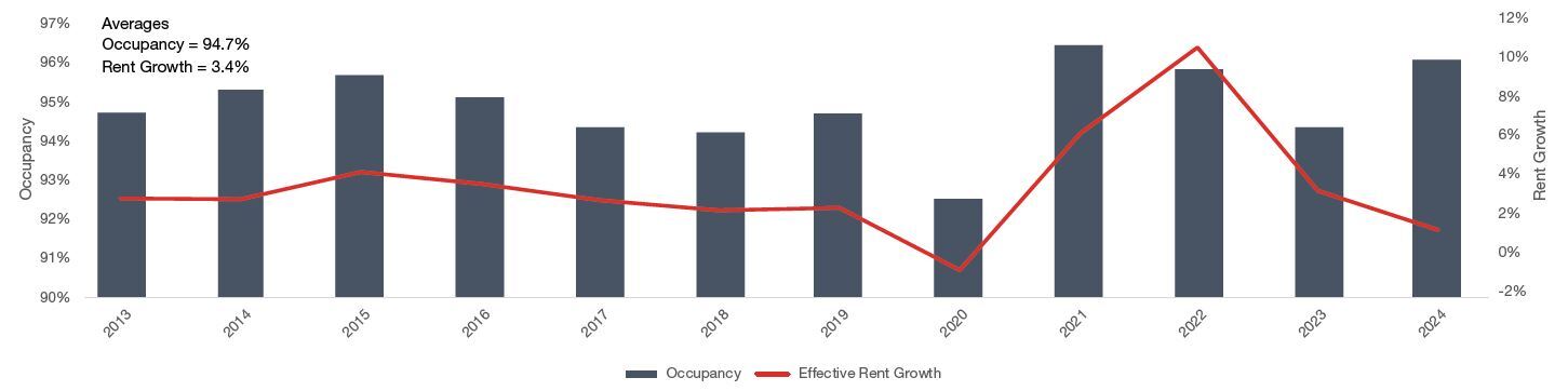 High Occupancy, Tenant Retention & Durable Income: High retention rates, long lease terms, and mission-critical operations support predictable cash flow.